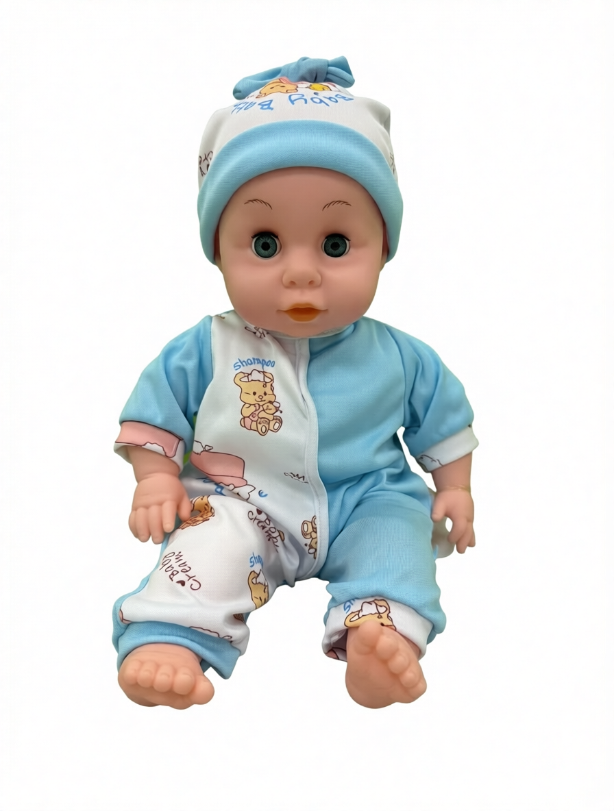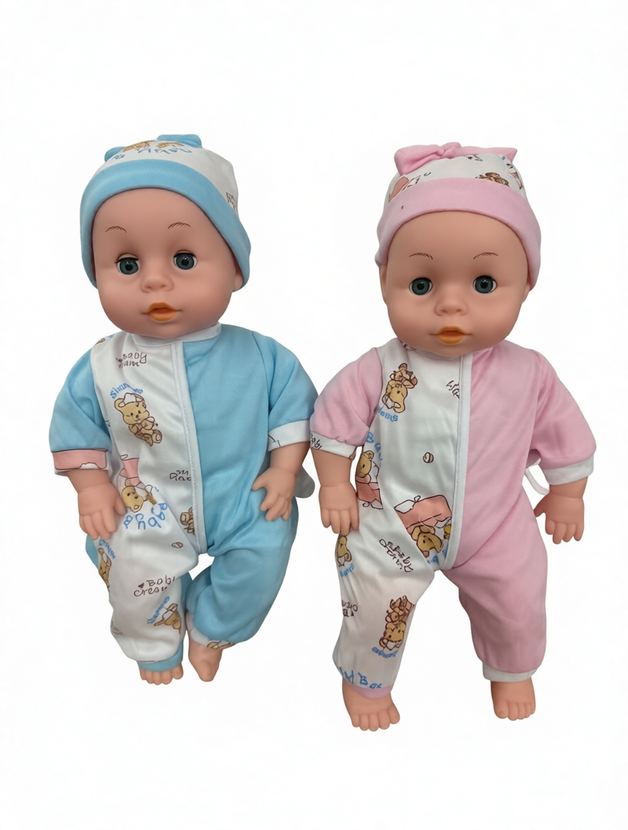 產品材質:塑膠、電子零件、棉花內含物:娃娃/衣服/奶嘴