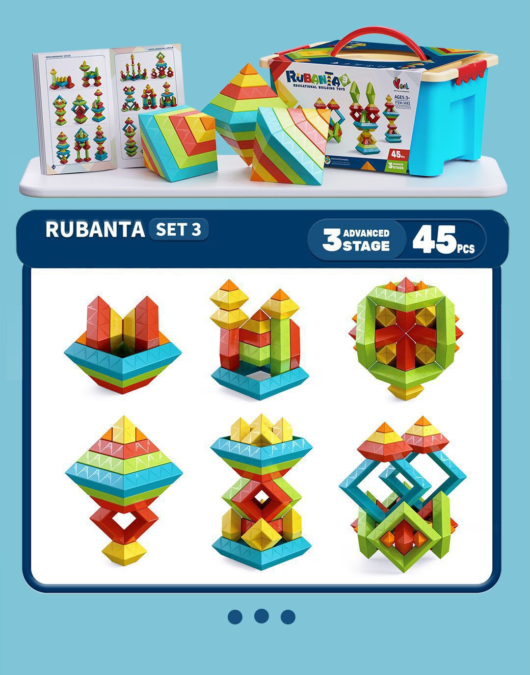 超值45件套:包含多種尺寸的方塊、三角錐、菱形框等,零件豐富,可玩性極高。