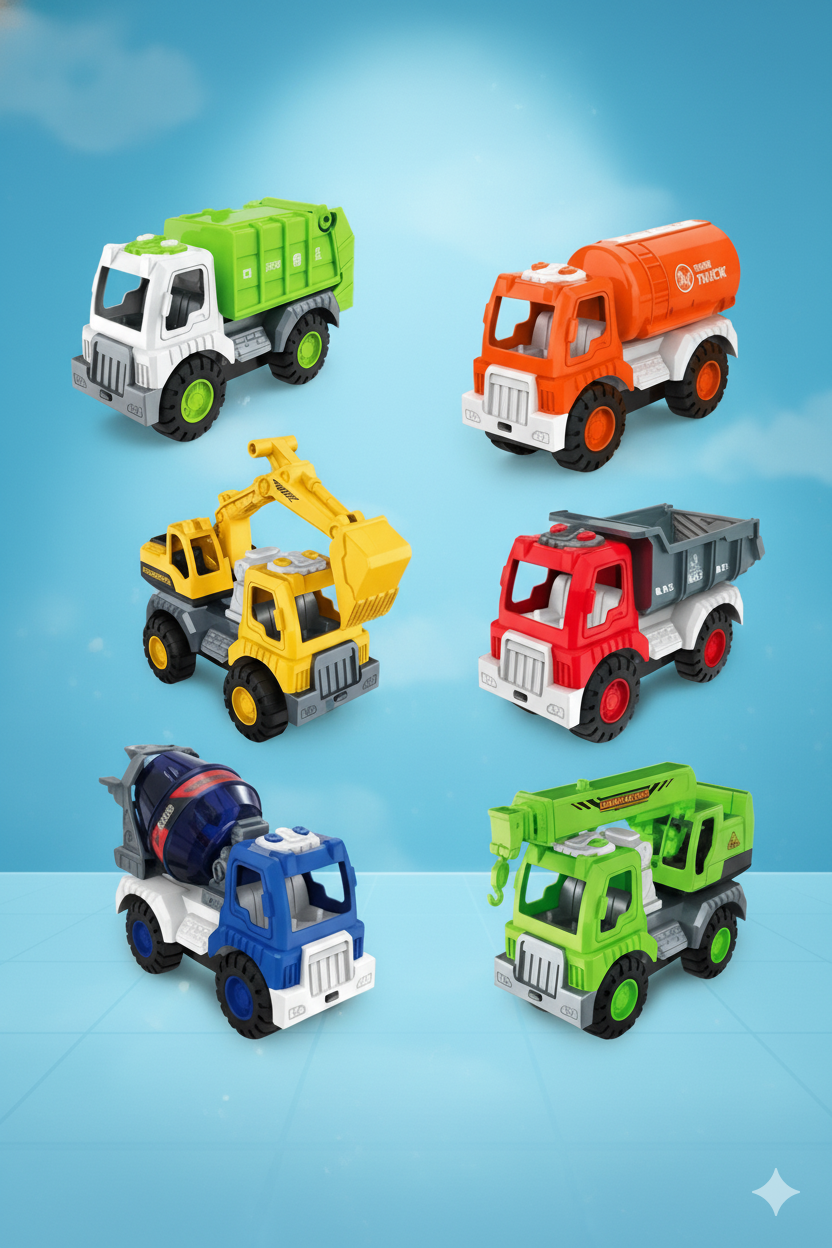 六車齊全 玩法多元挖掘、運輸、清潔、建設… 一整套工程車隊,