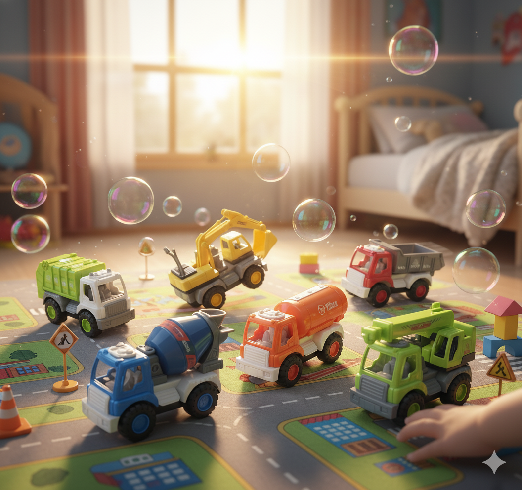 ✔️ 結構穩固:輪胎防滑、車身厚實,耐摔耐壓,室內外皆可玩。