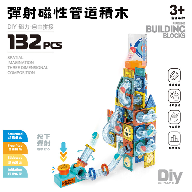 只需輕輕掰開磁力片,管道即刻分離。圓角設計、環保材質,幼兒也能安心把玩,玩完輕鬆收納,媽媽再也不用收拾戰場!