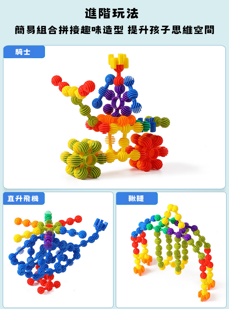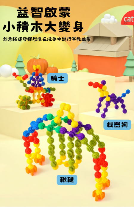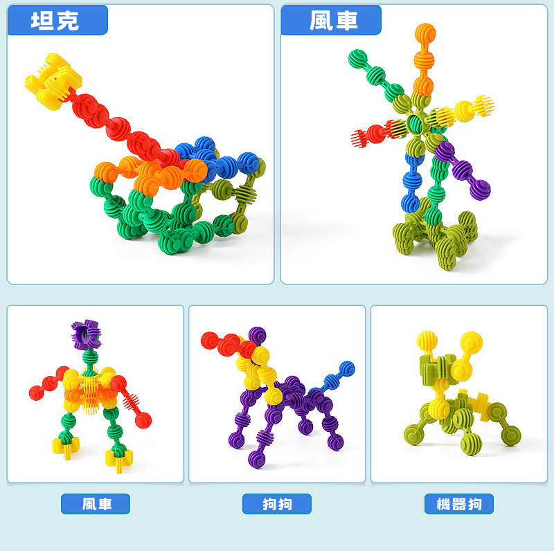 孩子可以:創意搭建:隨心所欲拼出動物、交通工具、建築物,說一個屬於自己的故事。