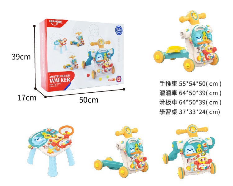 實物尺寸:手推車55*54*50( cm )、學習桌37*33*24( cm )、滑板車64*50*39( cm )、溜溜車64*50*39( cm )