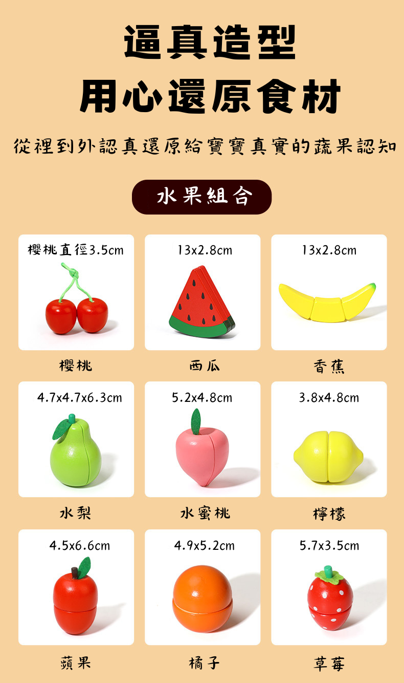 12種蔬果+尺寸標示(如:櫻桃直徑3.5cm),實證提升2-5歲寶寶食物認知力50%